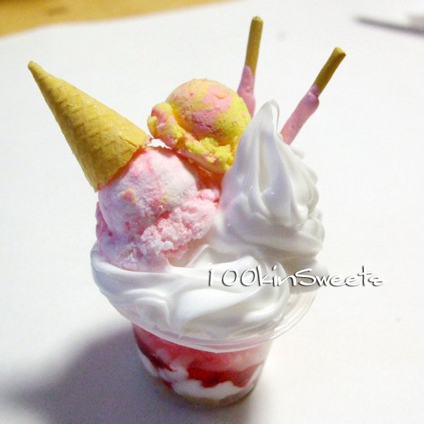 アイスクリーム・・・・色付けした軽量粘土を軽量スプーンを使って作成。