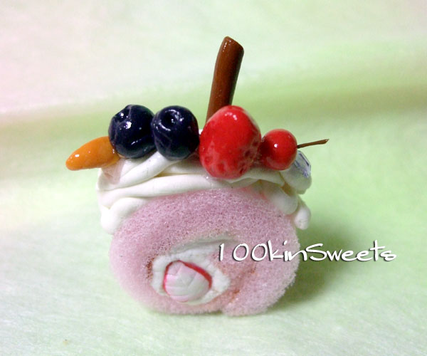 ちなみにロールケーキは接着剤とつまようじを使ってとめてます。
