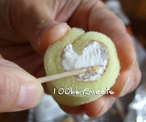 8. クリームの表面を爪楊枝でそげ落とすようにして