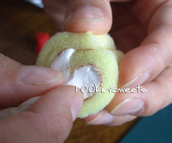 9. ロールケーキの上の部分にデコレーションしたら出来上がり~!!