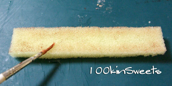 2. スポンジに焼き色をつけます。