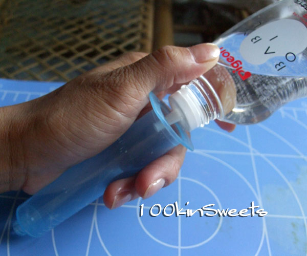 1. まず、シリマーの中にベビーオイルを入れます。