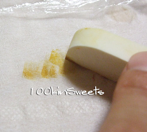 焼き色をつける時はこの↓化粧用スポンジを使って付けていきます。