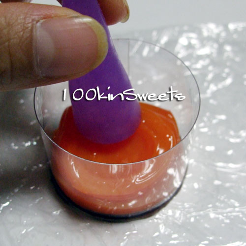 一段目(濃いオレンジ)・・・クリアシリコン+黄色の油絵の具+赤の油絵の具