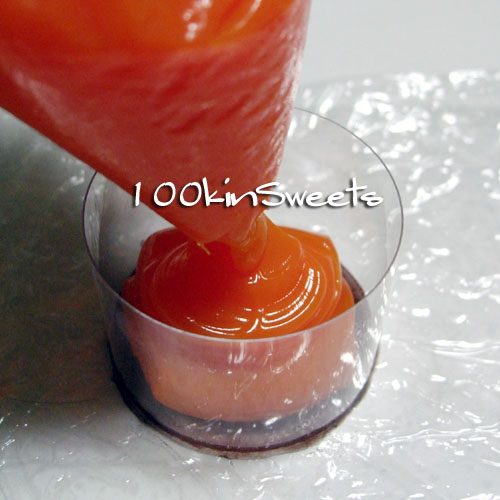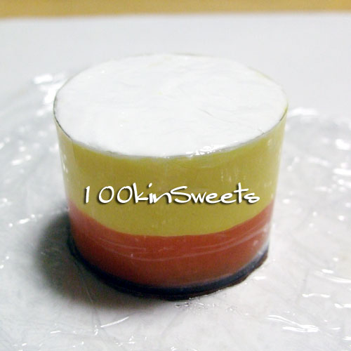 4. 同じ要領で黄色のカボチャプリン、ホワイトクリームを入れます。