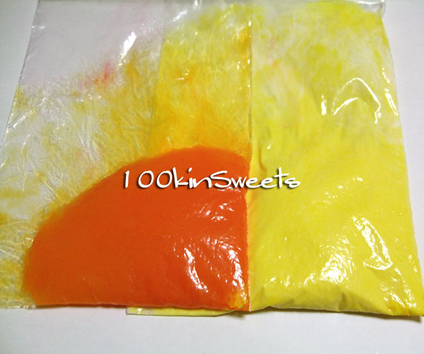 二段目(黄色)・・・ホワイトシリコン+黄色の油絵の具+赤の油絵の具