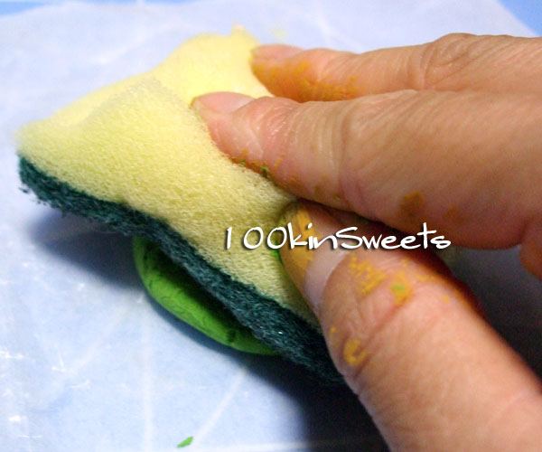 3. スポンジの粗い面でつぶします。