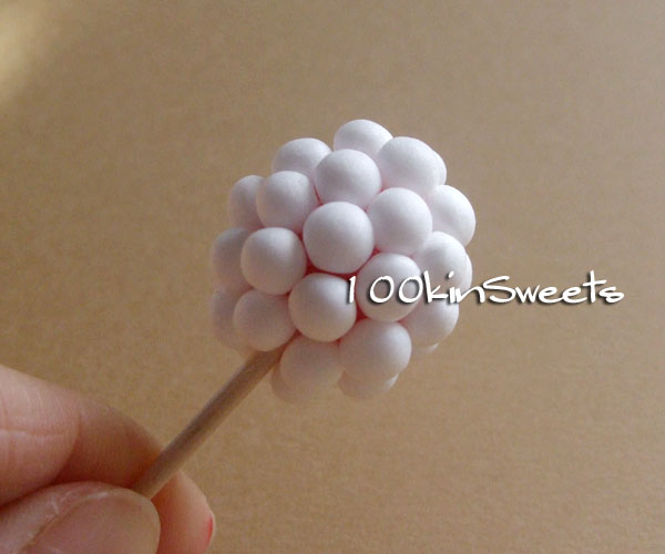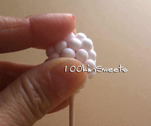 3. 1で作った玉に発砲ビーズを隙間なく付けていきます。