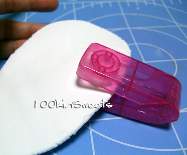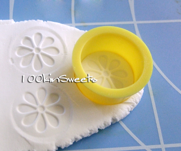 そして伸ばした粘土をエンボスパンチで挟み
