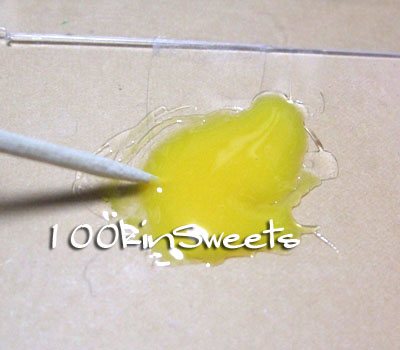 5. 黄色の絵の具を混ぜたエポキシ系接着剤を溝に入れていきます。