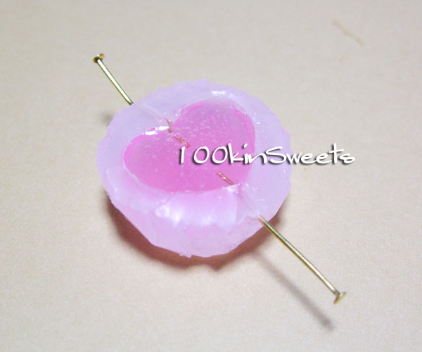 娘は丸のシリコン型に水色のエポキシ系接着剤とラメを入れ