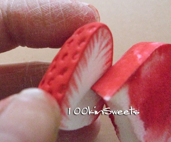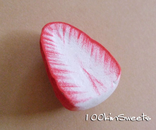 苺のふちだけ、トントンたたいてかすかに色をつけます。