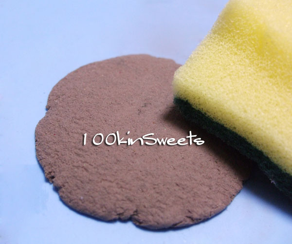 4. 3で作った粘土をまた裏返し、再度、スポンジの裏の粗めの方で