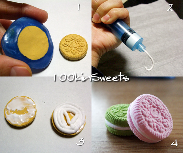 3.クリームを片側のオレオにボンドではりつけて、ボンドをつけたもう一枚のオレオと貼り合わせれば完成!!本物と間違って食べちゃいそうです。