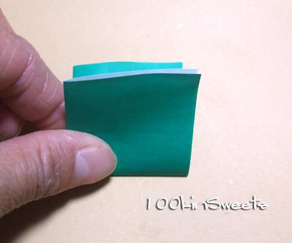 5. 葉っぱをパタンと内側に折って折り目をつけます。