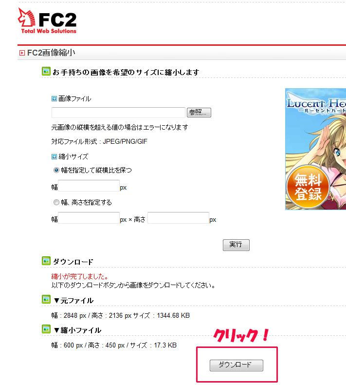 まず、Fc2ブログの管理画面の左の画像縮小をクリックしてください。↓