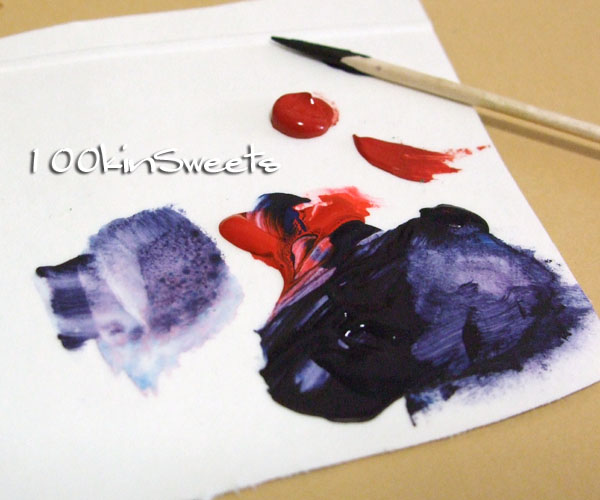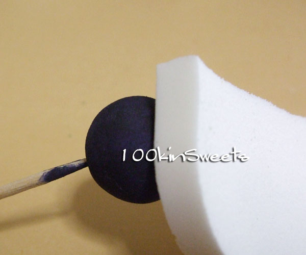 2.ということで、丸めた粘土に、葡萄の色をぬります。