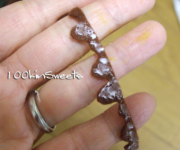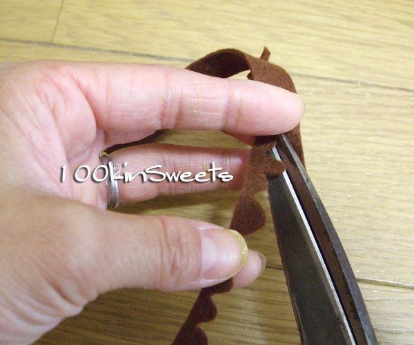 4. 茶色のフェルトを垂れチョコ風にカットし