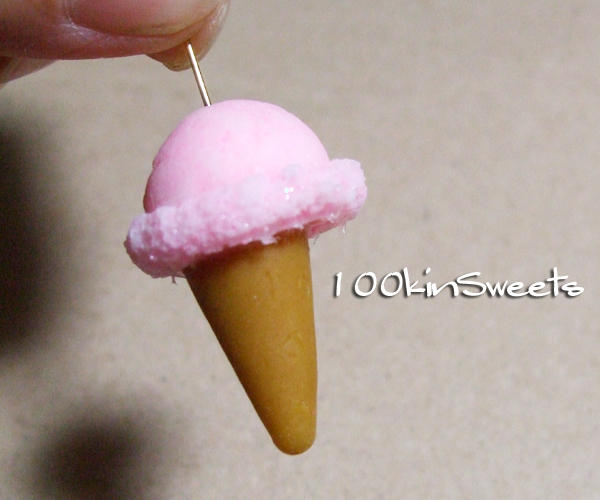 で、アイス部分は石粉粘土を着色した軽量粘土でくるんで、アイスを作ります。