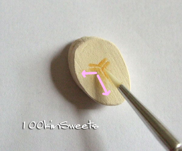 1. バナナの中央の色付けはポスターカラーの黄土色を使いました。