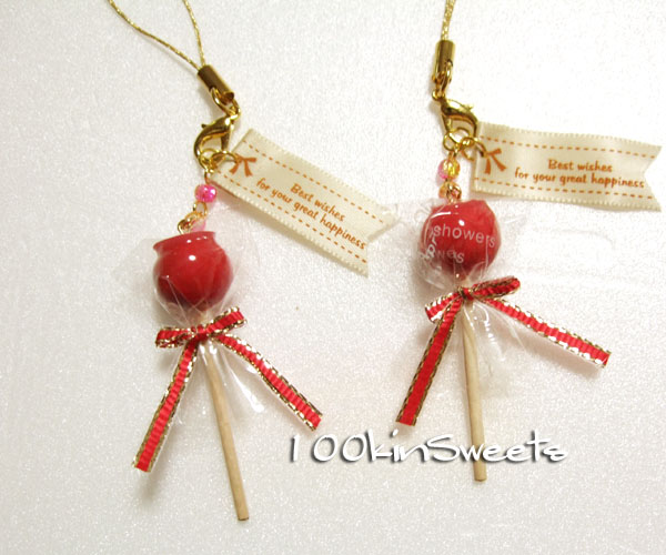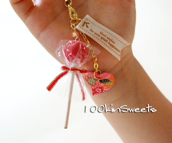 りんごあめ超可愛いですね~+.(*´∀`*)゚+. それに和のハートチャームもすっごく可愛い!!技術をお持ちでうらやましい!!