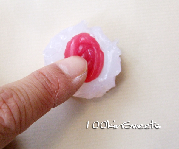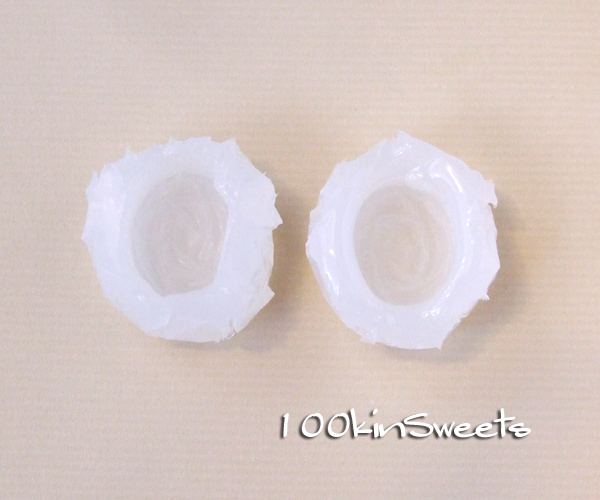 片方のキャンディをシリコンの型から外し、もう片方のエポキシ入りの型に入れます。