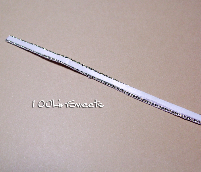 レースリボンの中央にピンクの細いリボンを貼りました。