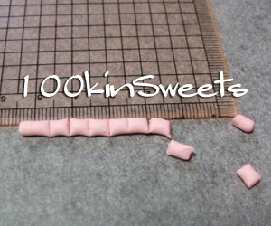 方法は粘土を棒状にして、それに定規をあて同じくらいの長さに切っていきます。
