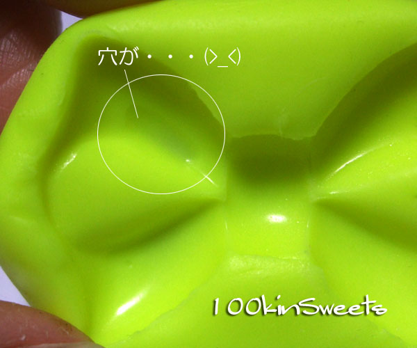 もうアウトです(>_<) もぉ~!なんでこんな初歩的ミスしてんのぉ~?って思いますよね。 でも、この失敗の前に、穴あき型を作ってしまい その原因を考えながら作っていたら、こんなミスをしてしまいました。 穴があいたのは、混ぜているときに、気泡が入ったのかな? とか、混ぜ方が足りないからそうなったのかな?とか 気を付けてたら、固まり始め、失敗に終わってしまったんです。 失敗その2