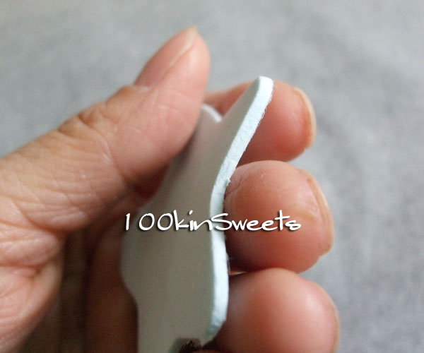 3.アイシングシートの端か、クッキーにボンドをつけてシートを貼ります。