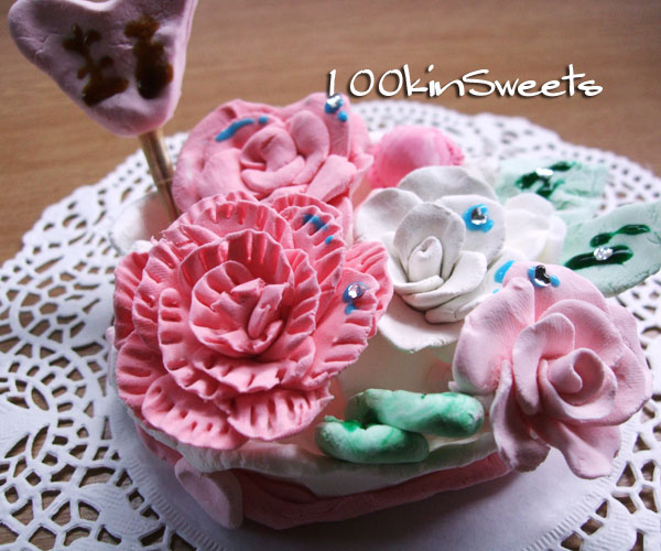 粘土のバラは、私はオーブン粘土で作ったバラをマカロンとかにはのっけたりしてるけど・・・。