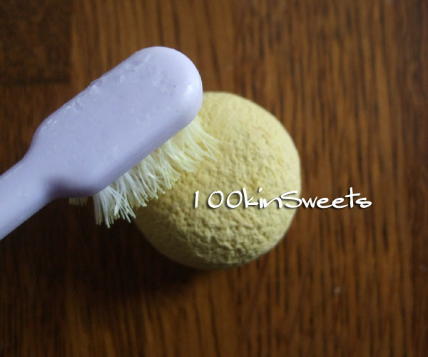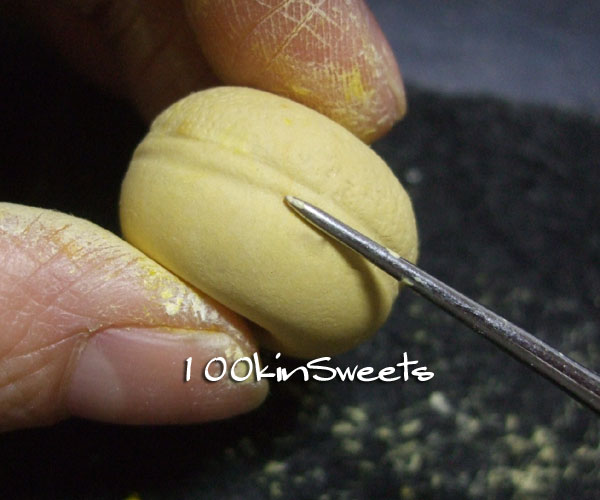 これは、完成したシュガードーナツに薄く伸ばした石粉粘土を貼りつけて