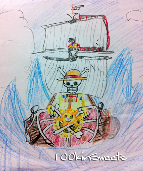 夕飯の支度してたら、サニー号を一生懸命描いてました。