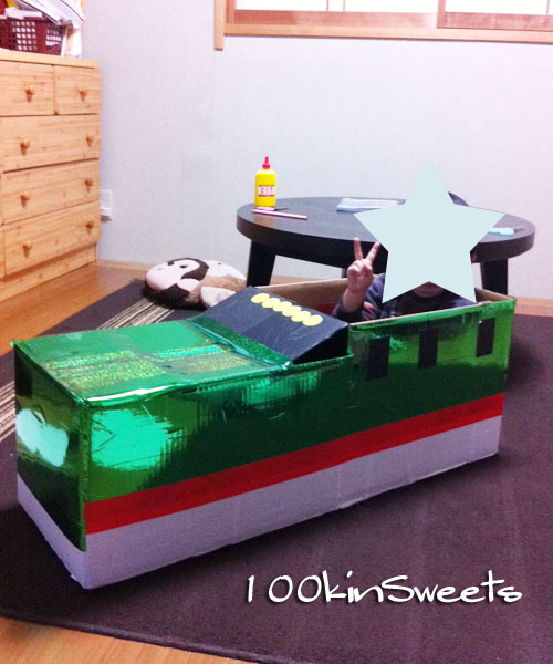 (娘にはダンボールで乗れるSLマンを作ってあげてました。)