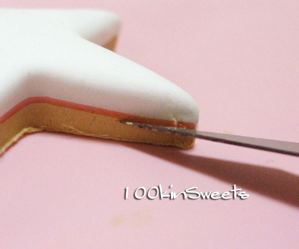 ひとつめは、アイシングシートとクッキーの生地の境目に