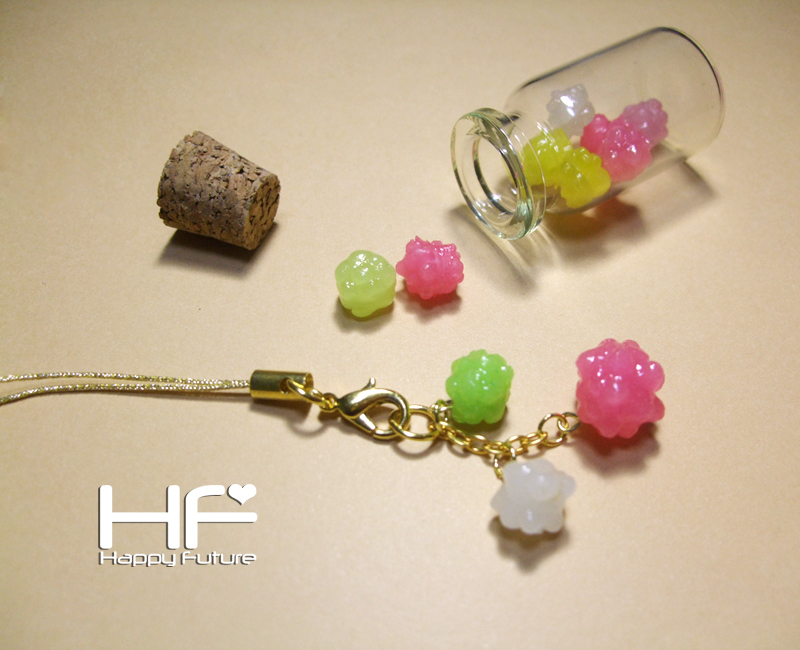 あとね、デザインとか何にも考えずに、適当に、ストラップに金平糖をつけてみたんだけど