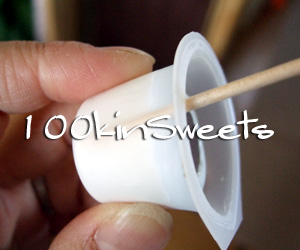 3. お菓子をシリコンに突き刺します。