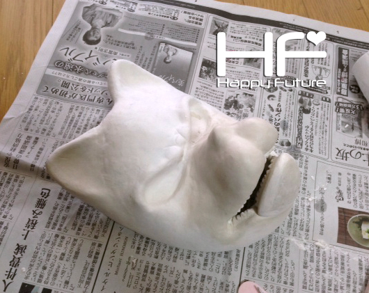 軽量粘土で、口をとんがらせたり、額を膨らませたり、なんとなくの形を作ります。