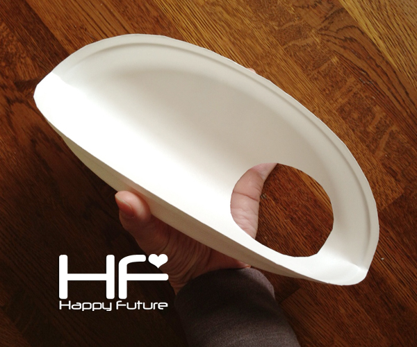 紙皿のままだと、平らなので、顔にフィットしないでしょ?