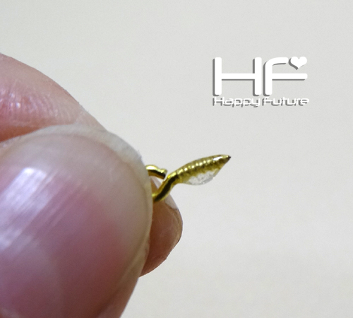 0.5mmのドリルで穴をあけ、太さ1mm弱のヒートンをねじ込んでみました。