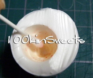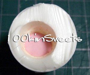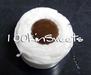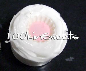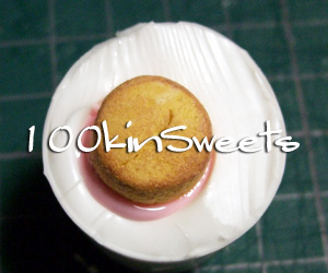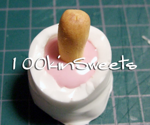 白を流し込み、少し固まったら、ピンクを流し込み、1.で作ったクッキー部分をさします。