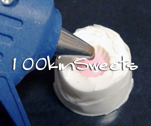 この時、最初グルーがまだ柔らかいので、クッキー部分が傾いてしまうので、