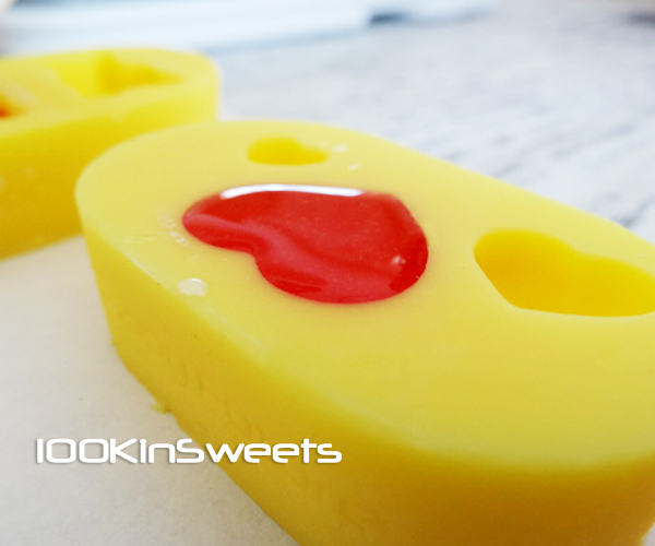 これは一層目を入れてからしばらく放っておいて、一度一層目(茶色)を型から外してしまったため黄色に着色した2層目が茶色の1層目に漏れてしまいました・・・(>_<)