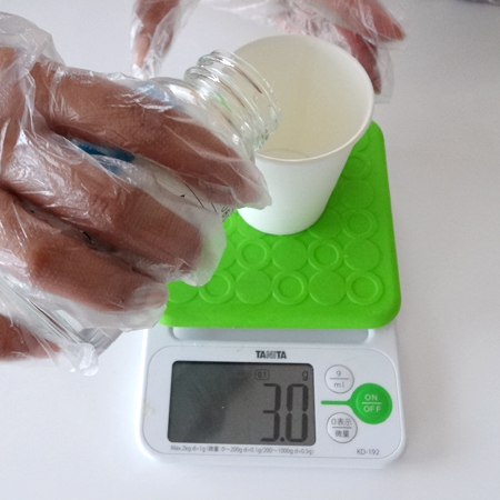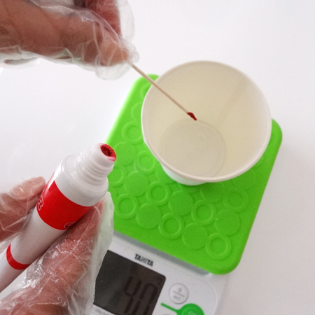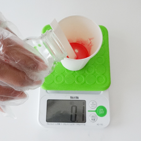 3.主剤(A液)を4gになるまで入れる