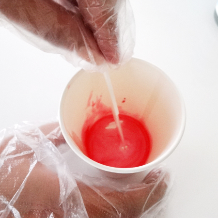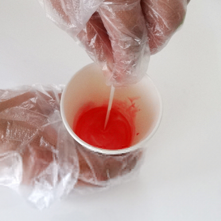 4.主剤に着色材を入れる。