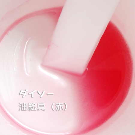 この画像は主剤にダイソーさんの油絵具(赤)を入れたもの。