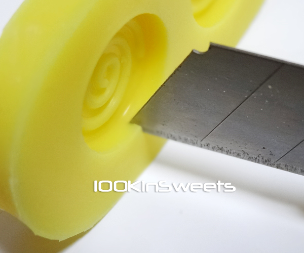 ①シリコンの型に切り込みを入れます。