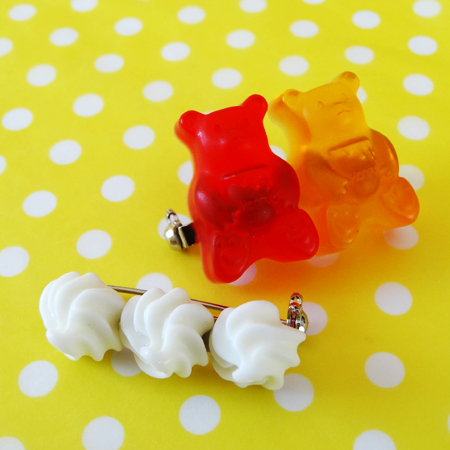 バックやお洋服にかじりかけチョコやキャラメルのブローチピンをたくさん付けたら可愛いいだろうなぁ~(*^。^*)