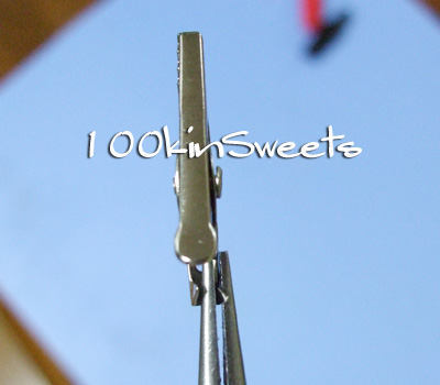 4. ワイヤーをクリップの爪の間に挟んで爪を内側に折り曲げ、ペンチでつぶす